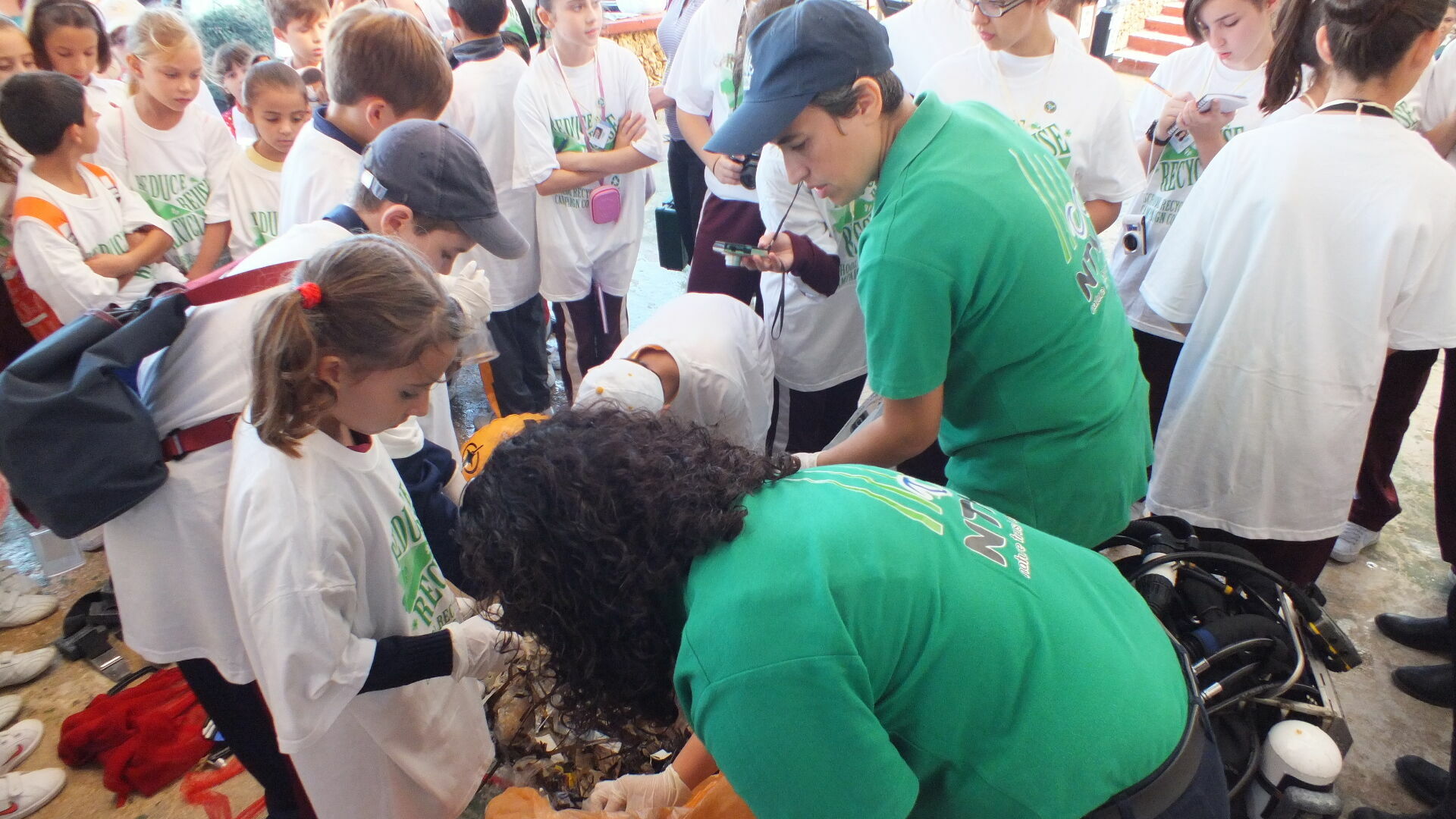 This photo shows members from our school of the EkoSkola committee separating waste which was gathered from the sea by two divers. These divers cleaned the seabed from litter that unfortunately end up in our sea. Involved in this activity there were many students from different schools, but the only students who separated the waste which was brought up to the shore from the sea were students from our school. They felt so responsible that as soon as the litter was brought ashore they presented themselves to do the job. EkoSkola representatives guided the students to succeed in this operation.